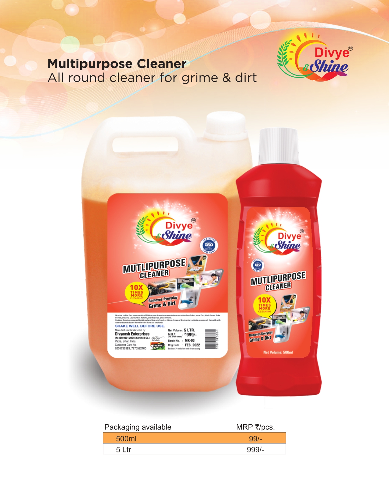 Divyansh Enterprises Pvt. Ltd. is proud to offer our premium 5L pack of cleaning products at unbeatable factory prices. There are no middlemen involved so you get the best deal. Our mission is to provide high-quality, safe, and affordable cleaning solutions for everyday use, ensuring hygiene and value for every customer.