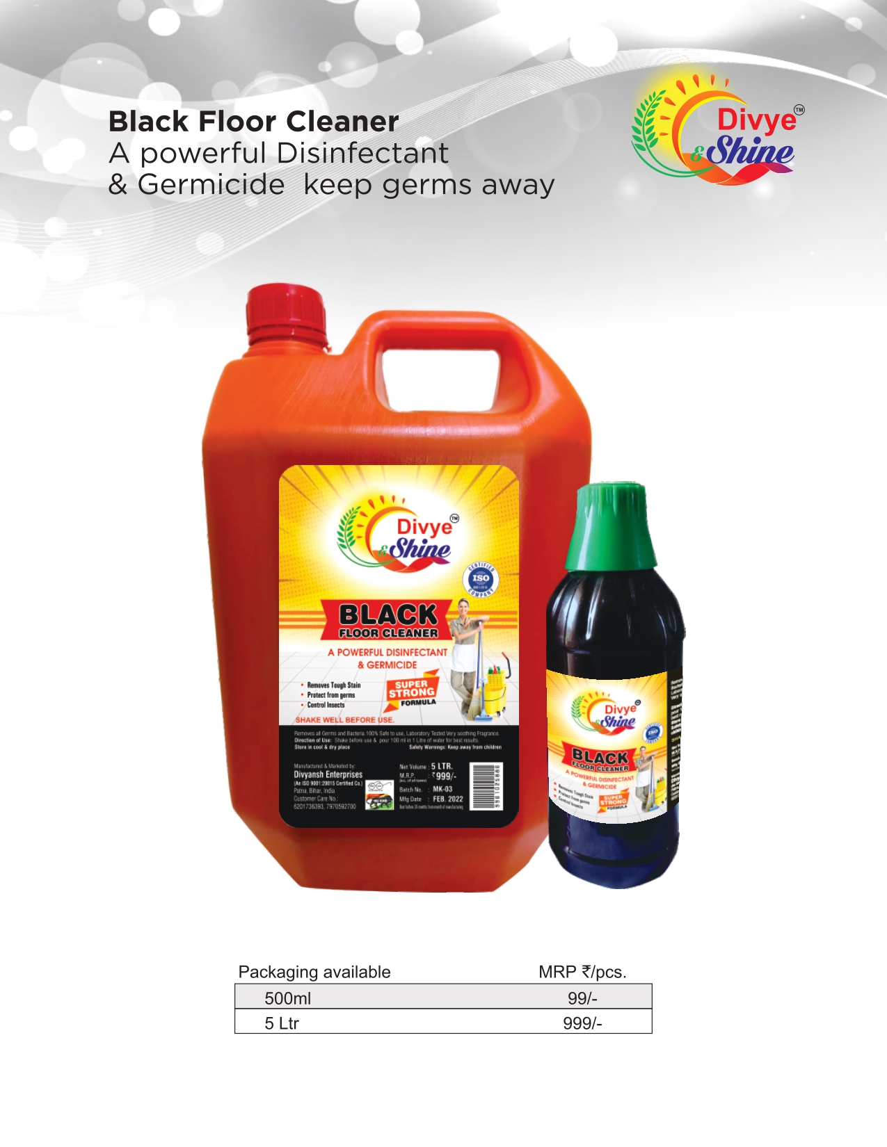| 23 | Black Floor Cleaner | 5 ltr's | 999.00 | 200.00 |