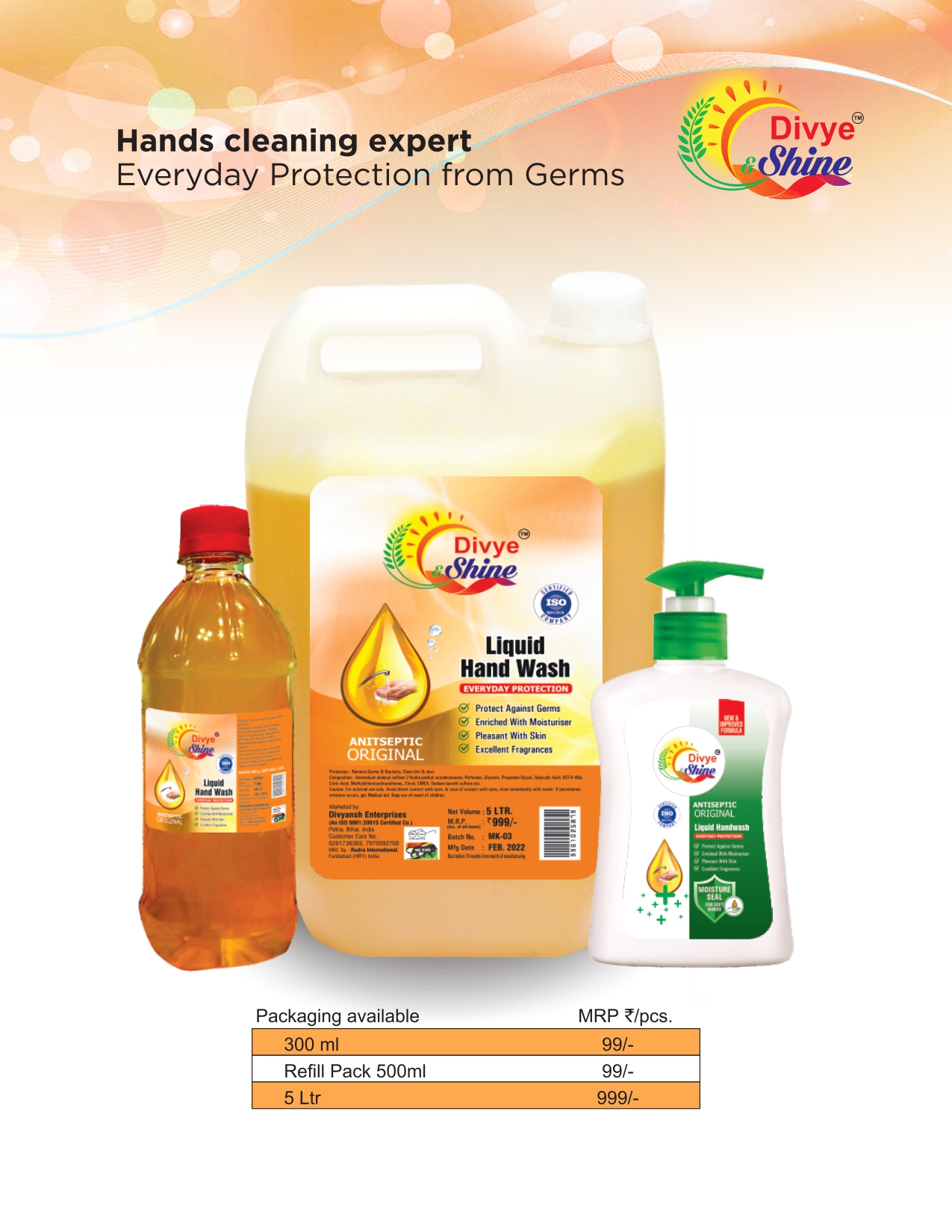 | 17 | Liquid Hand Wash | 5 ltr's | 999.00 | 200.00 |