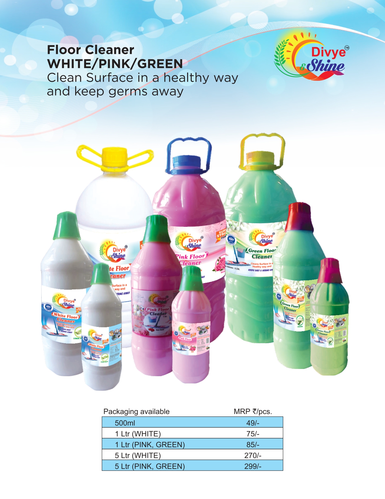 | 13 | White/Green/Pink Floor Cleaner | 1 ltr | 85.00 | 42.50 |